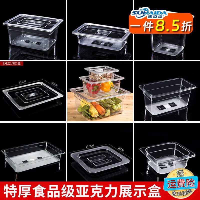 アクリル仮量ポット、スパイシーポット、透明プラスチックスナックと冷菜、業務用長方形ディスプレイボックス