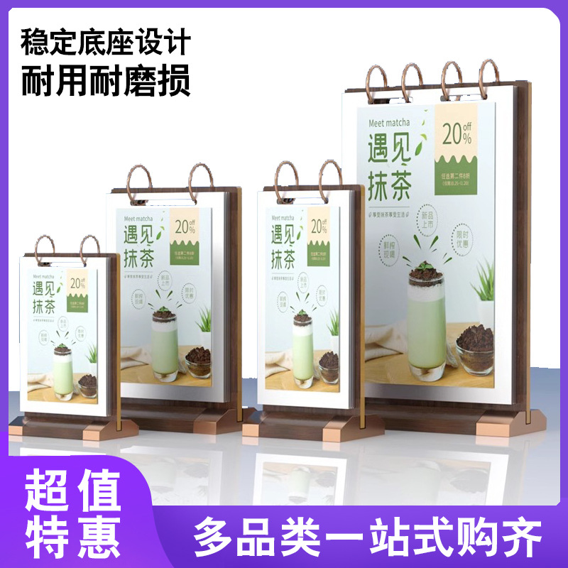Pvcページめくり台カードa 4製品展示ブランドa 5レストランテーブルカード両面a 6台カードミルクティー店実木テーブルカード