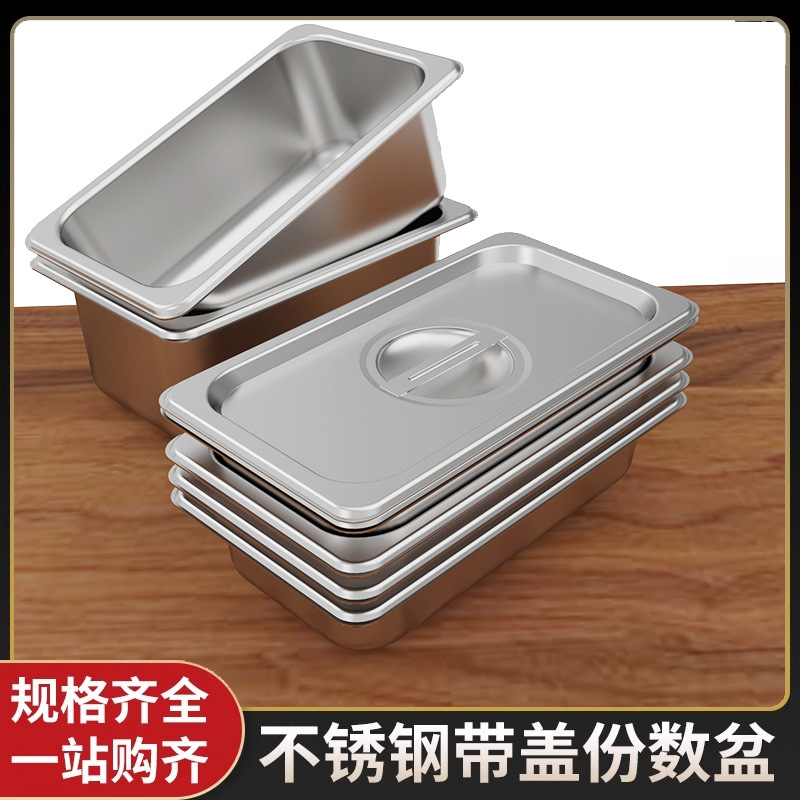 ステンレスの数鉢の商用バイキングは長方形の食べ物の鉢のファーストフードの食堂の野菜の鉢の四角い皿の箱をかぶせます。