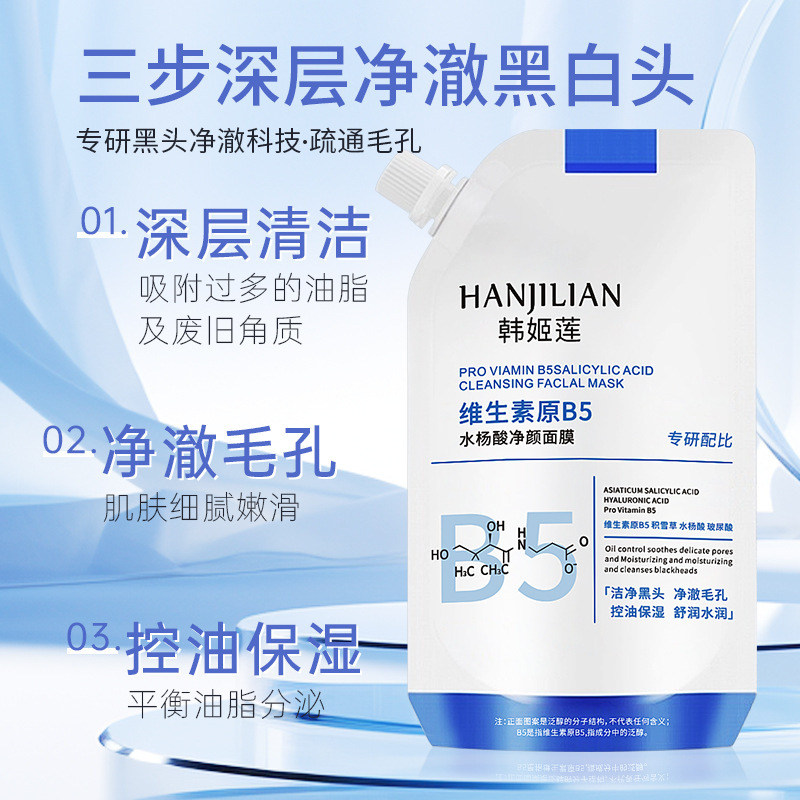 韓姫蓮ビタミン原b 5サリチル酸浄顔保湿マスクはさわやかに油をコントロールして黒頭の深層に行って水の柔らかい肌を補います。