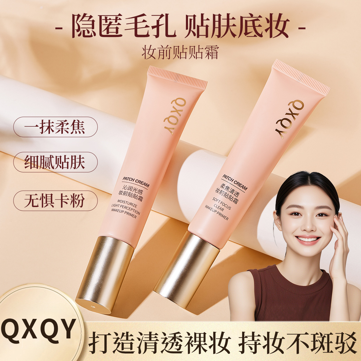 QXQY清澄透柔焦化粧前にクリームを貼って、目に見えない毛穴を隔離して化粧前に素顔を打って、潤い感を感じてクリームを貼ります。