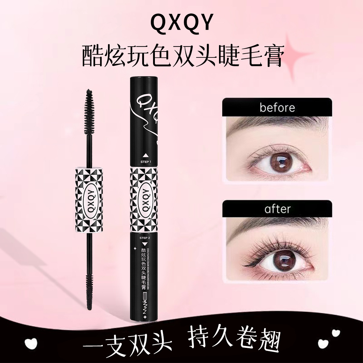 QXQYダブルヘッドのマスカラは細くて濃密なカールが長くて、根元がはっきりしています。