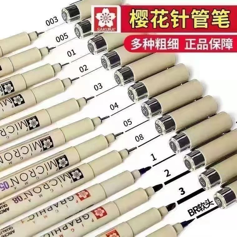日本の桜の花の形をしたニードルペン、美術専用防水桜の花の線画ペン、学生用描き下ろし・スケッチセット