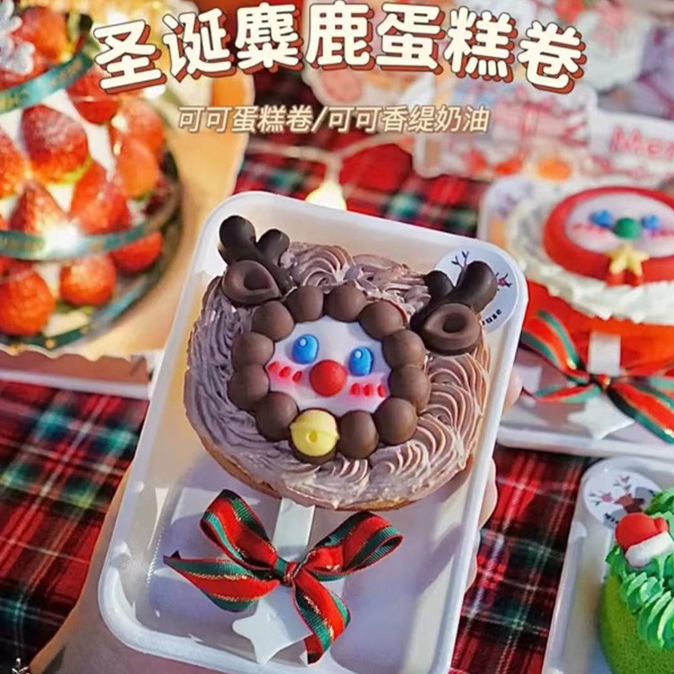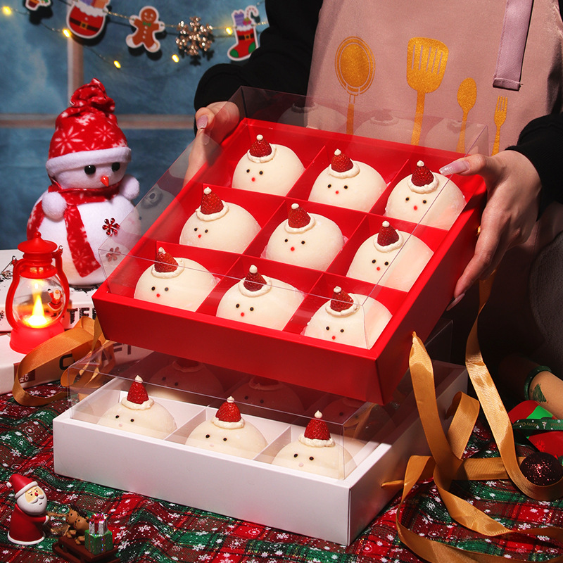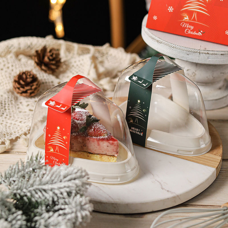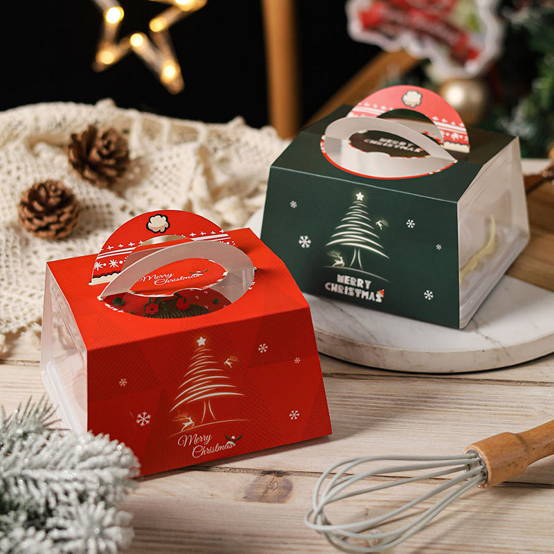 クリスマスケーキの包装箱を持っています。4インチバスクケーキ6インチの三角ムースを切って、防霧デザートを包装します。