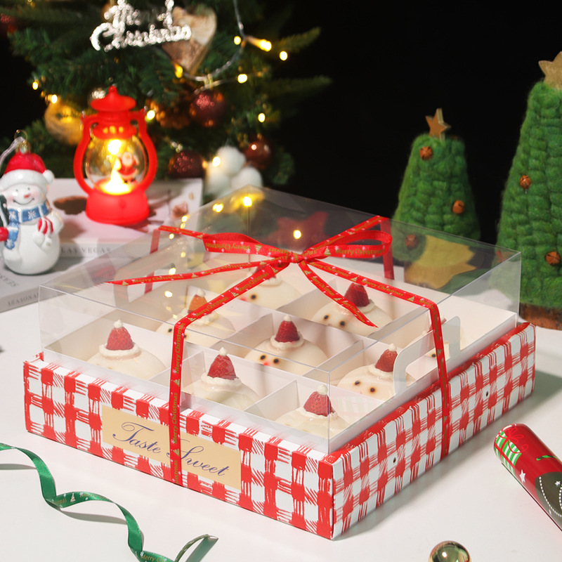 千鳥格小紙コップケーキ箱クリスマス9粒馬芬杯手提げギフトボックス新年透明年用品包装箱