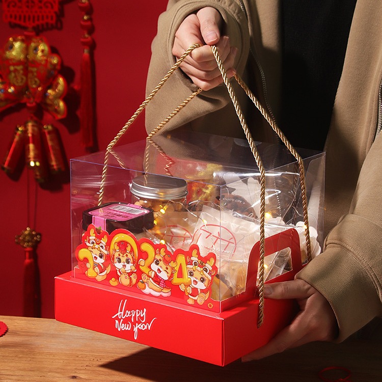 新年ギフトボックス包装2024龍年クッキー雪花ショートニングキャンディー牛圧延糖もち米船透明ギフトボックス