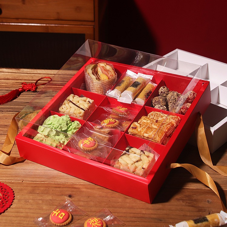 龍年新年九宮格甜品雪花ショートニング箱太妃糖乾果紙コップケーキ焙煎箱