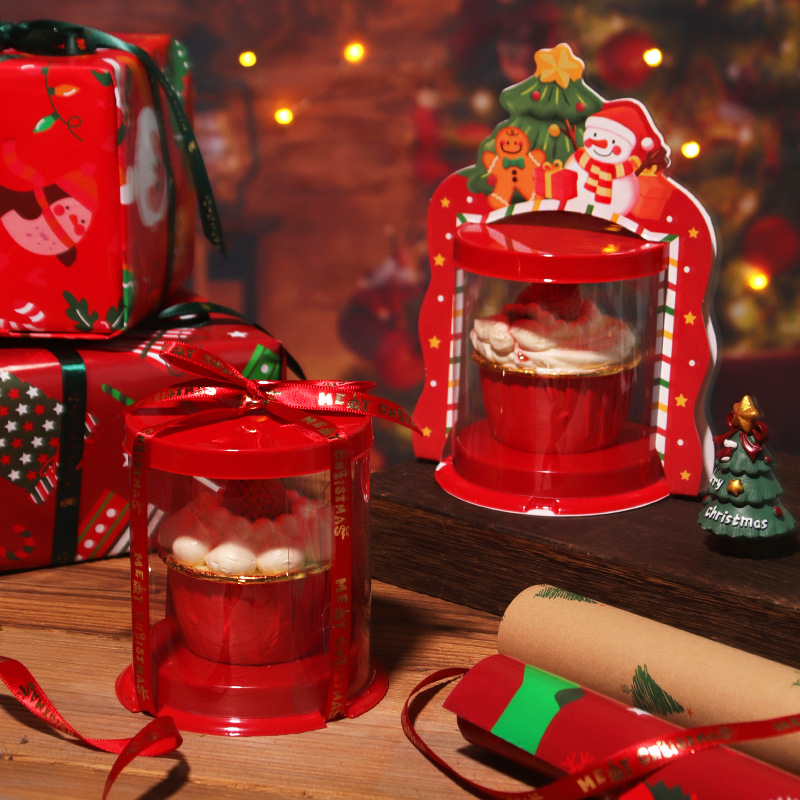 クリスマス2インチケーキ箱紙コップケーキ包装箱装飾カップミニデザート透明包装箱
