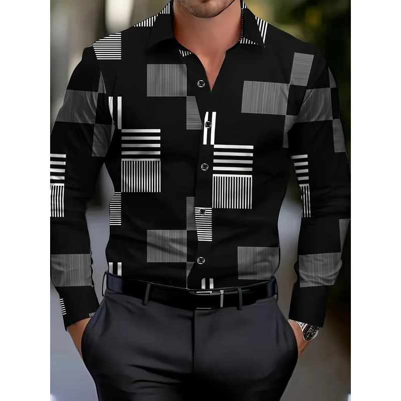 クロスボーダーメンズレギュラーフィットチェック柄プリントボタンフロントシャツカジュアル