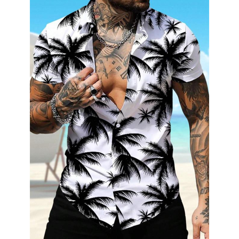 メンズ レギュラーフィット パームツリープリント シャツ カジュアル 半袖