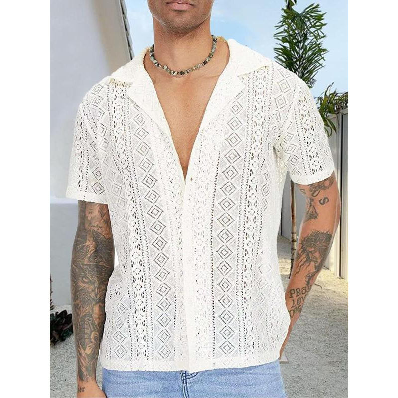 メンズ ソリッド ジオメトリック 中空ボタン フロント シャツ レギュラー