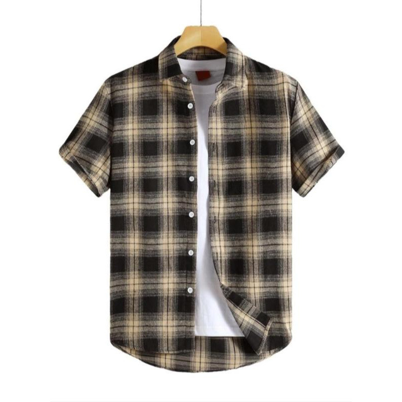 クロスボーダー メンズ チェック柄 プリント 半袖シャツ レギュラーフィット カジュアル