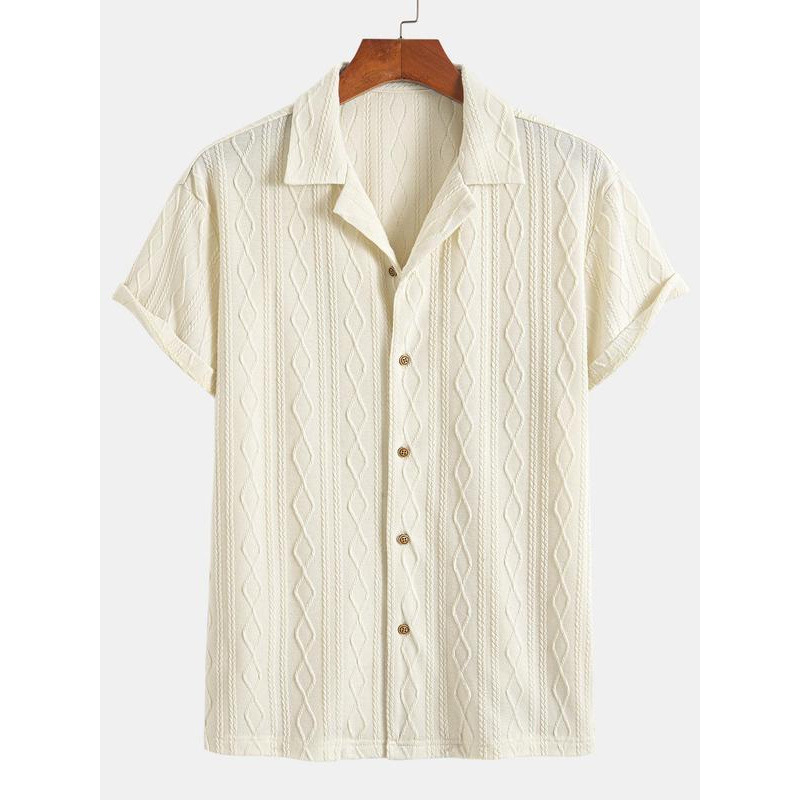 メンズ ソリッドカラー 半袖 ケーブルニット シャツ カジュアル 快適
