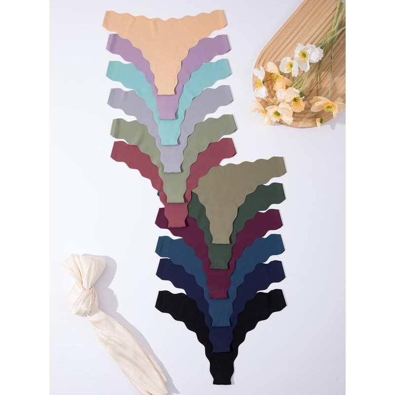 女性用ソリッドカラーウェーブトリムTバックソフトで快適な通気性