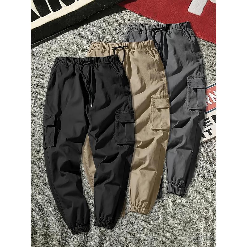 クロスボーダーメンズソリッドポケットカーゴパンツルーズカジュアルストリートウェア