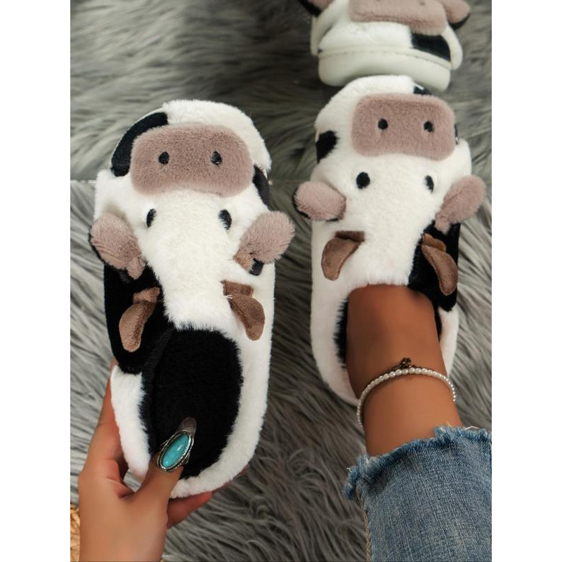 女性のかわいい牛のデザインの豪華なスリッパ暖かい寝室ファジー