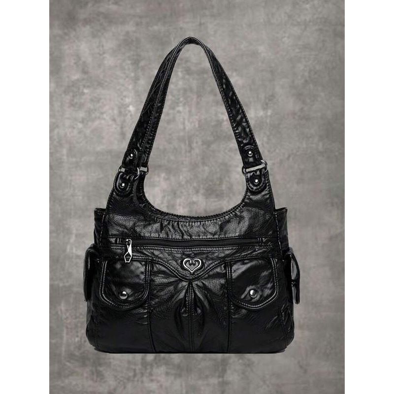 女性用バッグ ファッショナブルな無地のハート装飾トートバッグ