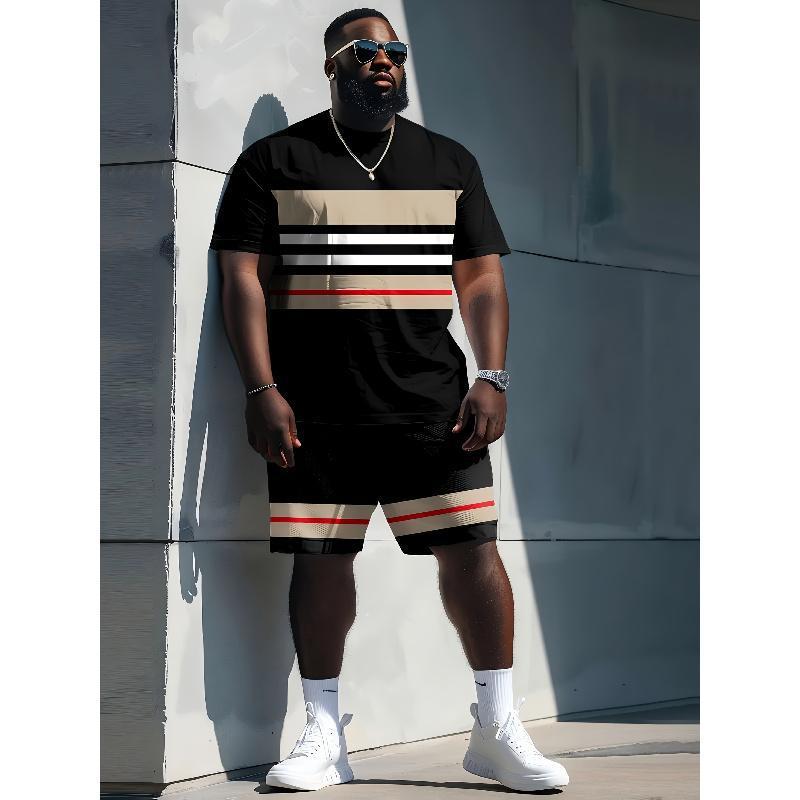 跨境Plus Size Men's Street Casual Modern Simple Striped