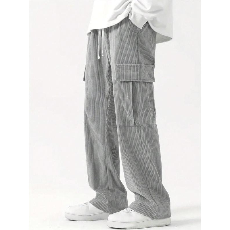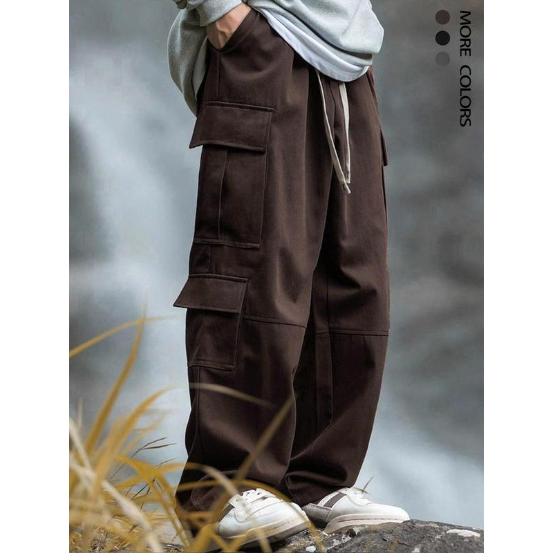 メンズ ソリッド ポケット カーゴ パンツ ルーズ カジュアル ストリート ファッション