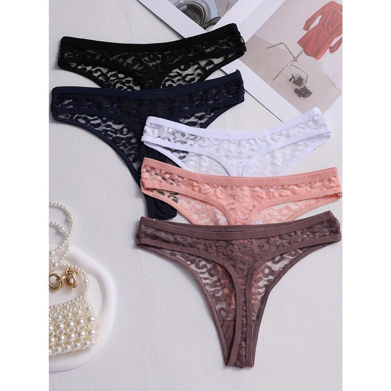 クロスボーダー5ソリッドカラーフローラルレースセミトランスペアレントTバックセクシー