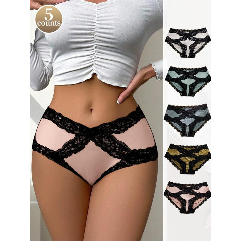 クロスボーダー レディース ソリッド カラー パッチワーク レース パンティ ソフトで快適