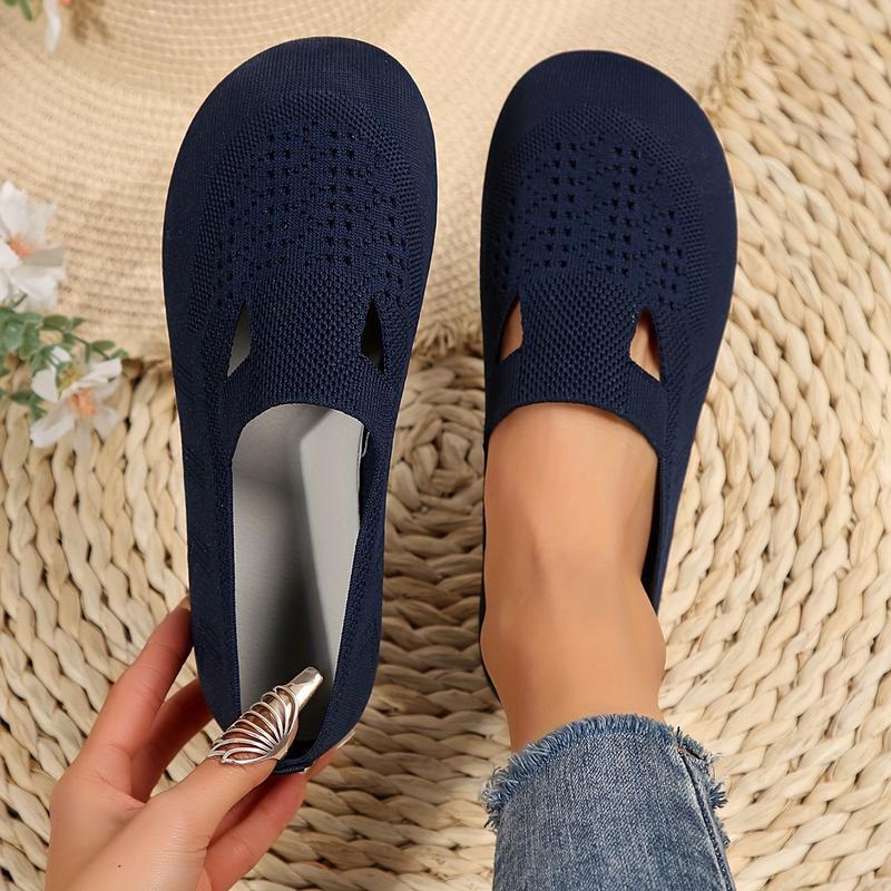 女性のソリッドカラーのフラットシューズ通気性フライングウーブンスリップ