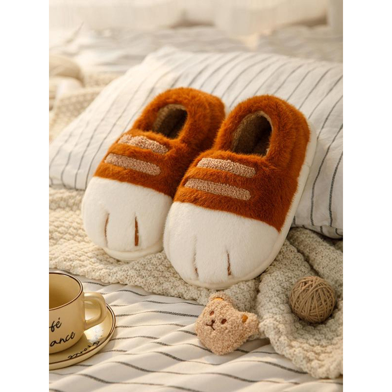コーヒーブラウンユニセックスシューズかわいい漫画猫の足デザインぬいぐるみ
