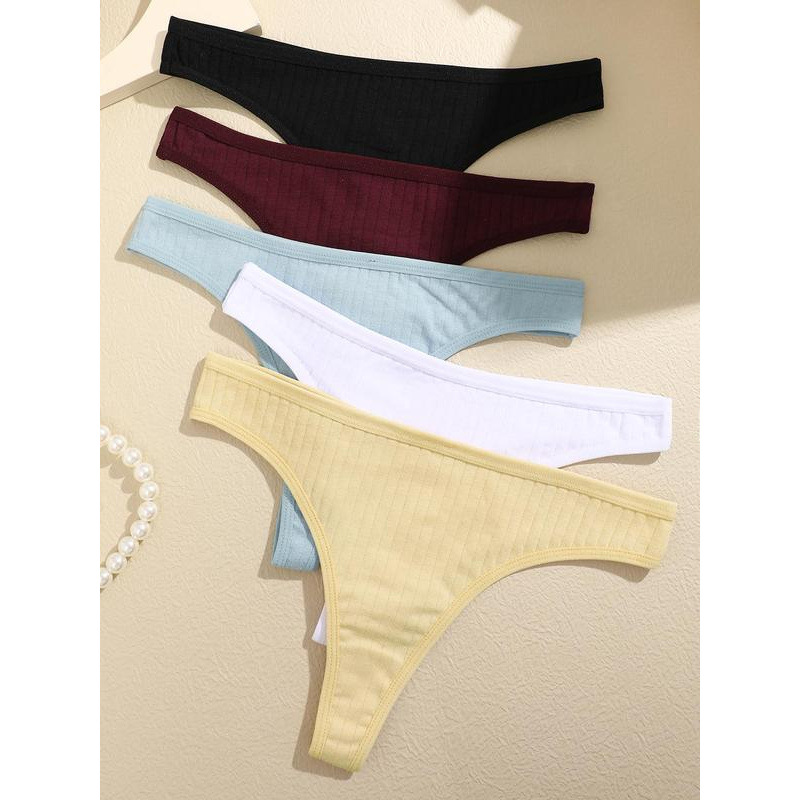 女性用ソリッドカラーリブTバック通気性肌に優しい