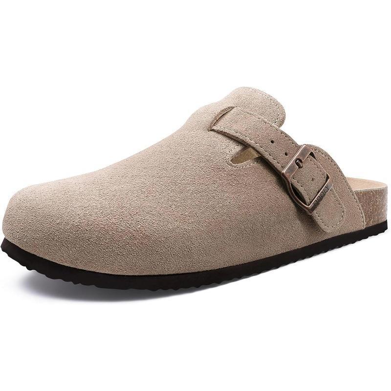 クロスボーダー本革スエードクロッグス レディース メンズ ソフトコルクフットベッドレザー