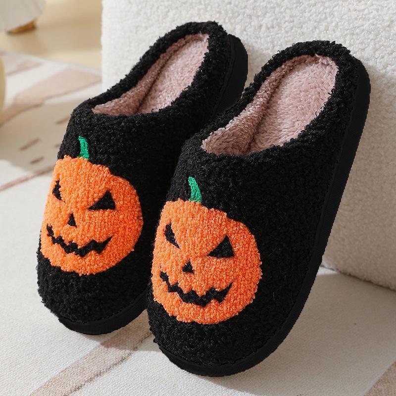 綿スリッパ女性男性冬の靴カボチャプリント暖かい