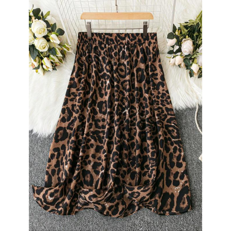 クロスボーダーヒョウ柄カーブヘムスカートカジュアルファッションロングスカート