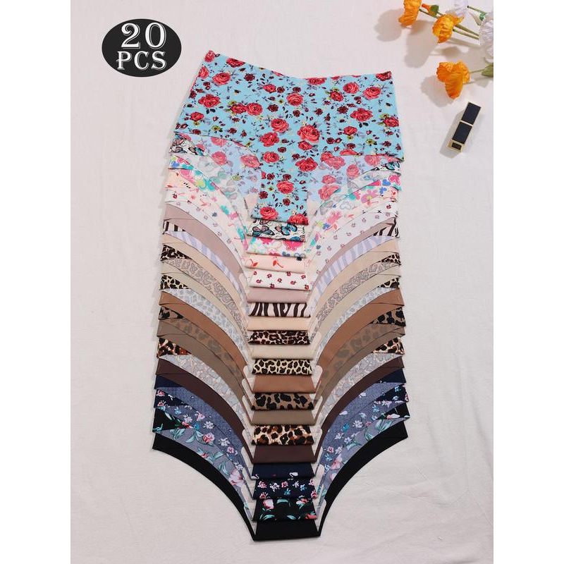 女性用ソリッドカラー花柄オールオーバープリントパンティキュートソフト