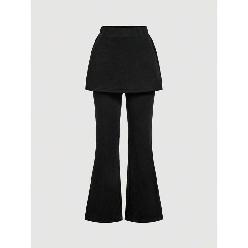 レディース ソリッド カラー カジュアル ブラック フレア スコート 2 In 1 パンツ