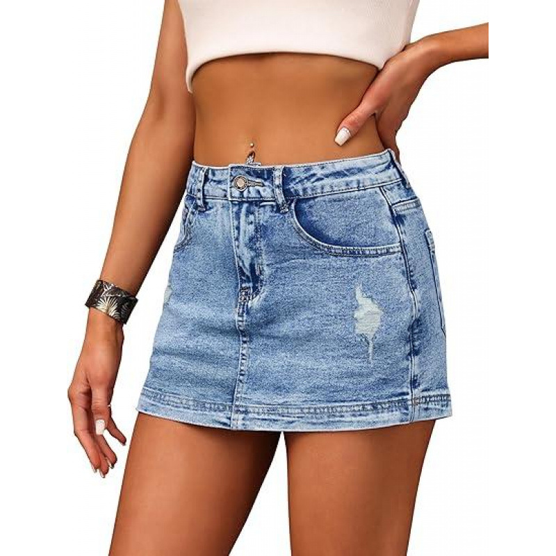クロスボーダー【Fengbay】デニムスコート レディース ハイウエスト リップド ミニ