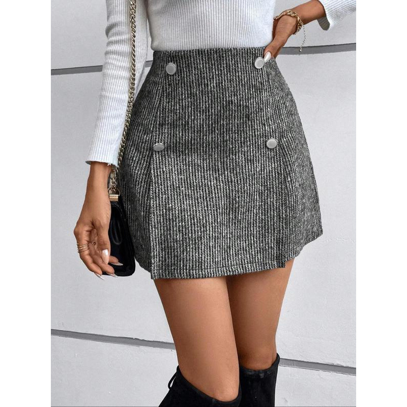 女性のソリッドボタンハイウエストAラインスカートエレガントなファッション