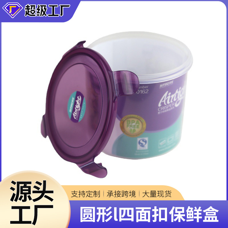 1100mlラウンドl 4面バックルタッパーシールボックス透明収納ボックス冷蔵庫収納ボックス