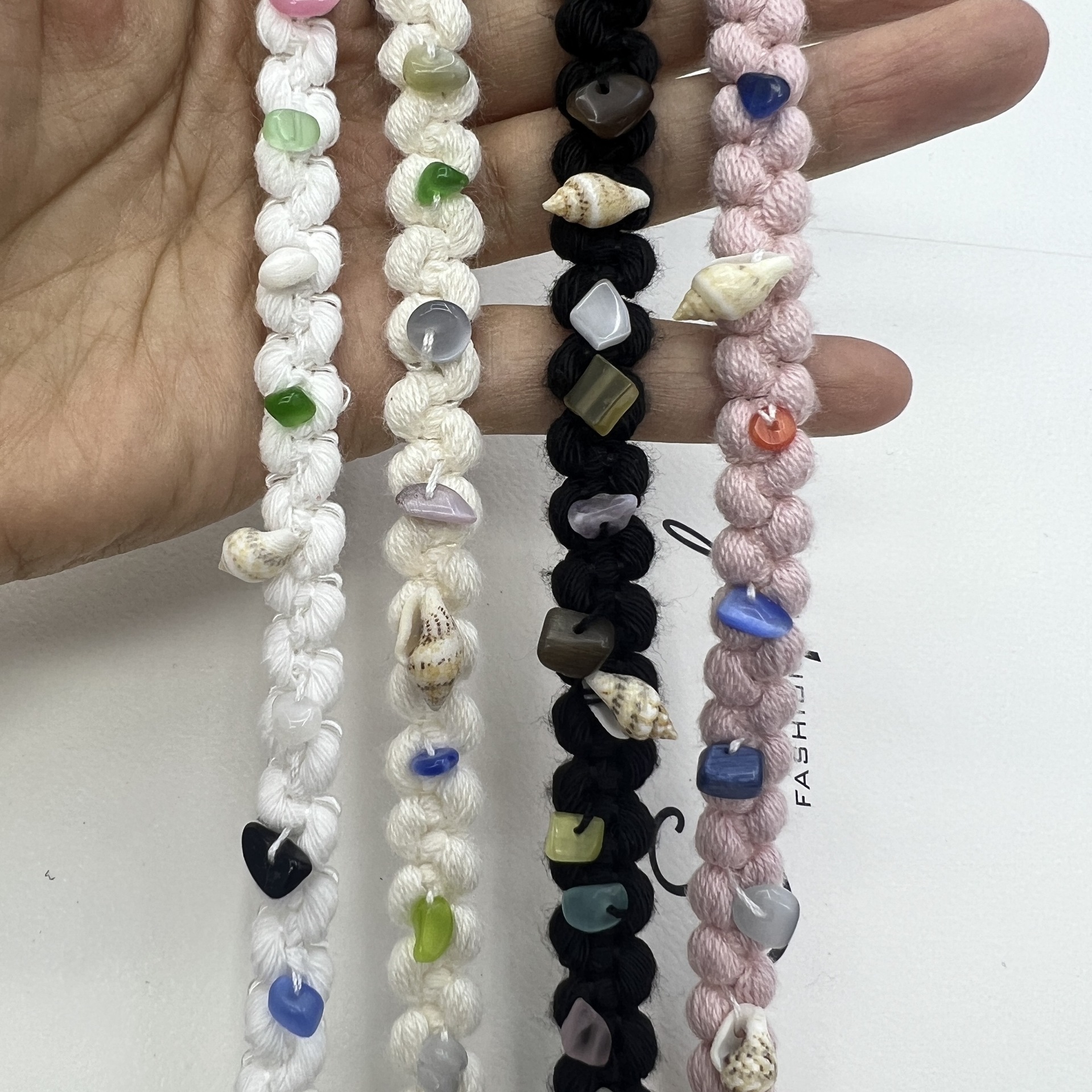 粉杏白彩色石头海螺贝壳花边织带绳diy外套装饰衣边包辅料