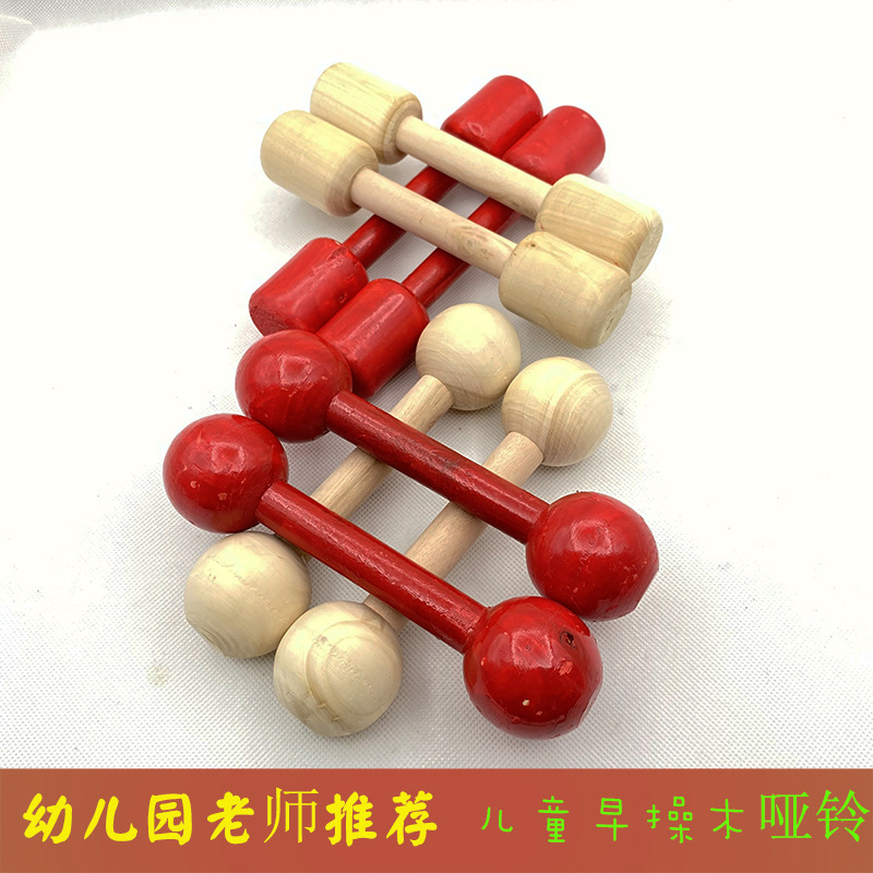 木製のダンベルの角の小学生の幼稚園のフィットネスの丸い頭の木の体操のダンベルの子供の鈴の木のダンベル