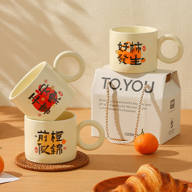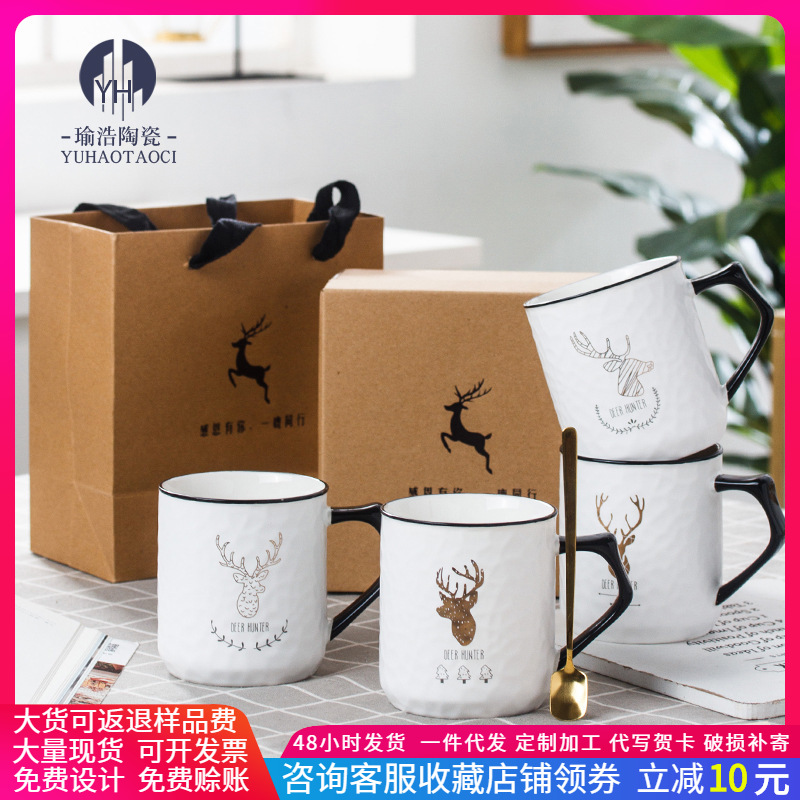 保険ギフト「一鹿有你」カップ、セラミックマグカップ、オフィス用ティーカップ、ホリデーアクティビティカップ、クリエイティブギフトボックス