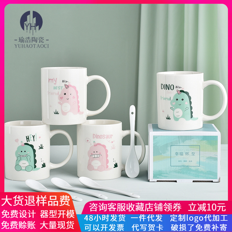 漫画ギフトカップセラミックカップ恐竜セラミックカップギフトカップルセットコーヒーカップオフィス印刷可能ロゴ