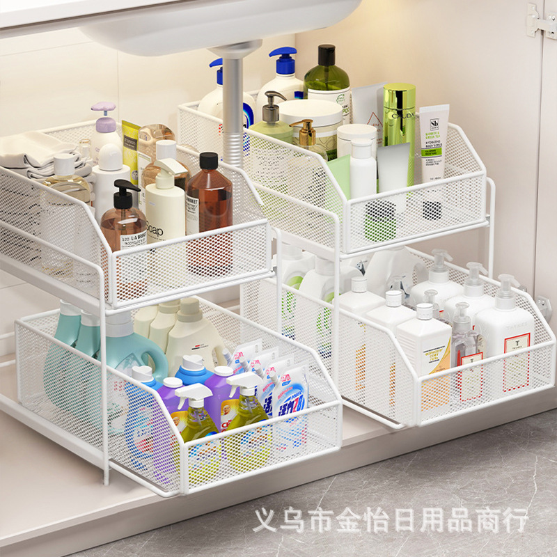 スポットキャビネット収納ラックキッチン収納バスケット層状調味料ボウルとディッシュプルアウト収納ボックスシンクの下