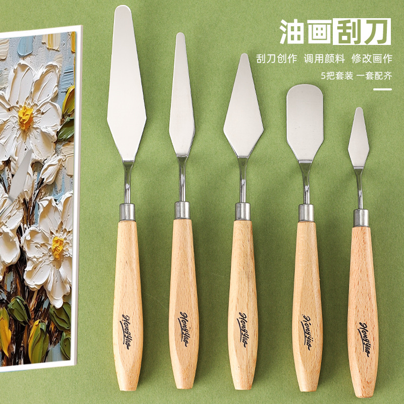 新型クロスボーダー供給美術高級木質油絵スクレーパーステンレス水粉顔料スクレーパー5点セット