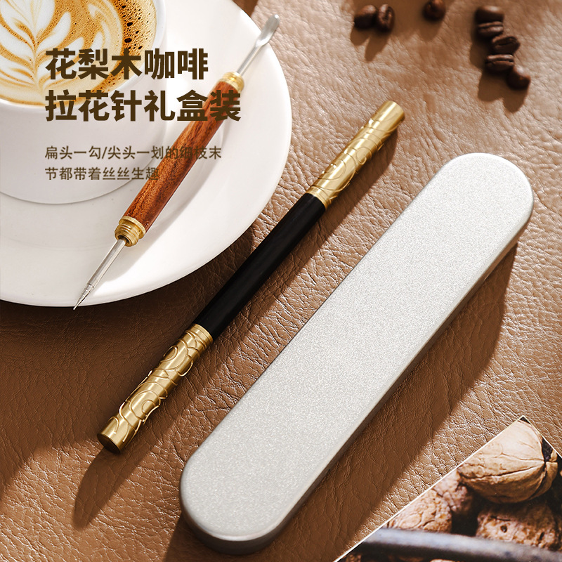 金のカチューシャの花梨の木の柄の彫刻の針の304ステンレスのコーヒーの花の針の攪拌の棒の表装の花の針の勾花の針