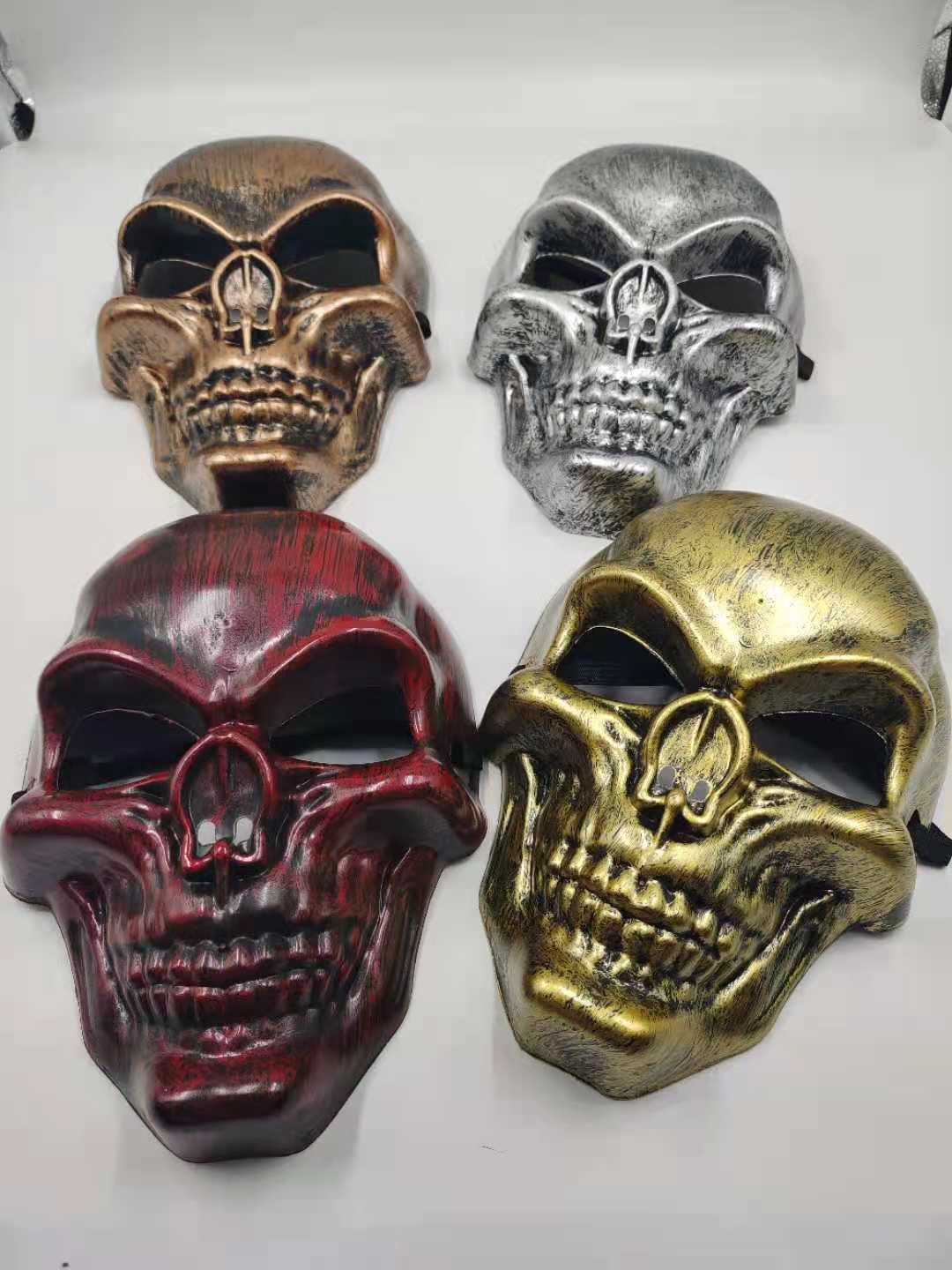 ハロウィンV字型フェイスマスク、電気メッキアンティーク風ホラーマスク、厚手マット仕上げ、アイライナー付きPVC製、紅葉マスク、鬼頭