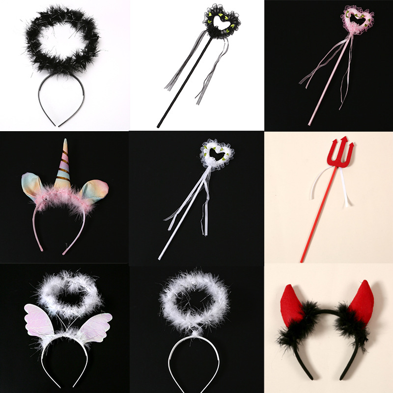 子供用ハロウィンエンジェルヘッドバンドパーティーコスチューム小道具魔法の杖女の子パフォーマンスバックデコレーションセットヘアバンド手作り