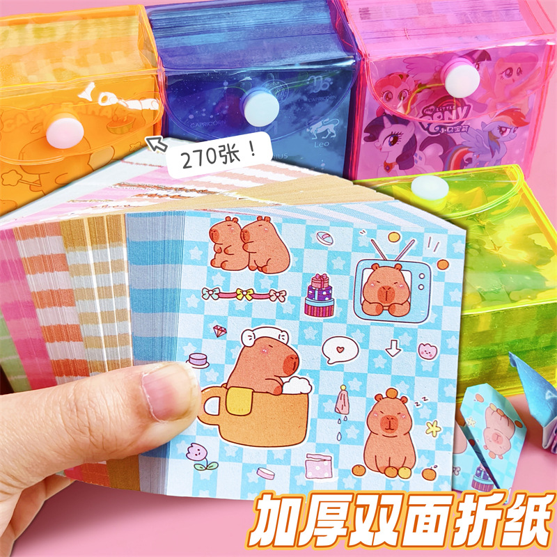 カピバラ 両面印刷折り紙 小さな正方形 ミニ かわいい折り鶴 子供 幼稚園 手作り折り紙