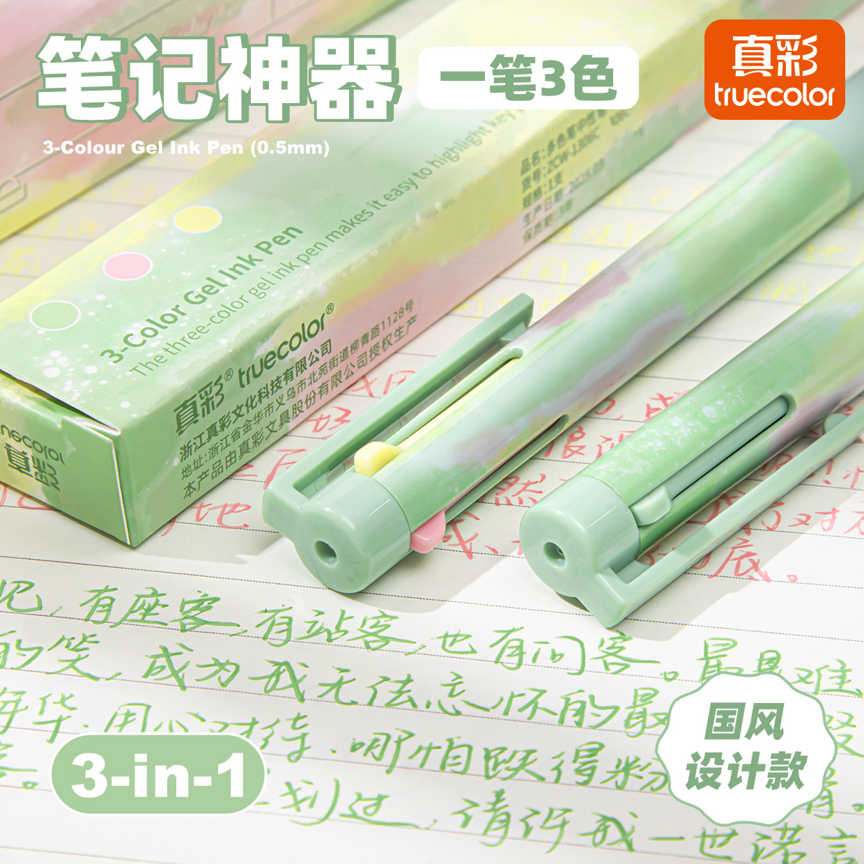 トゥルーカラーの新しい3色ペンゲルペン、高価値インスタイルプレスゲルペン、問題ペン、間違い修正ペン