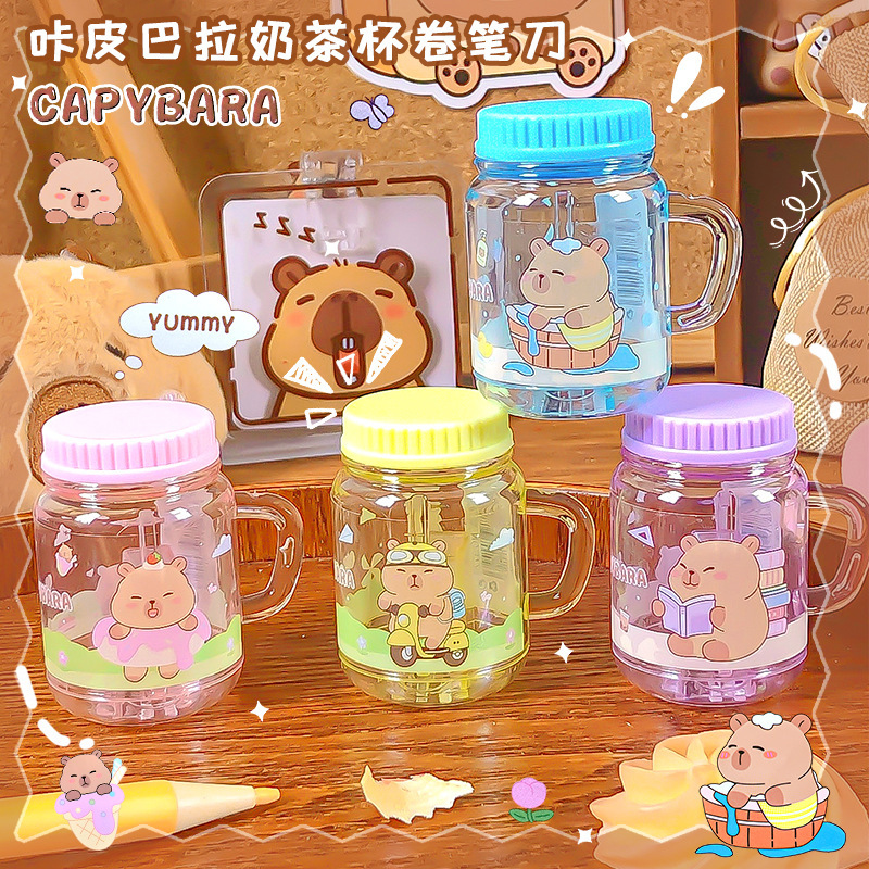 カピバラミルクティーカップ型鉛筆削り漫画かわいいポータブルミニ学生鉛筆削り単穴鉛筆削り