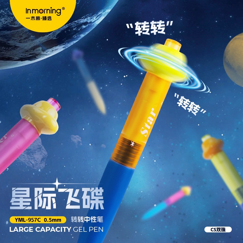 Yimulin 星間空飛ぶ円盤回転ゲルペン、楽しい減圧、高価値プレスブラシペン、クリエイティブ、速乾性、滑らか