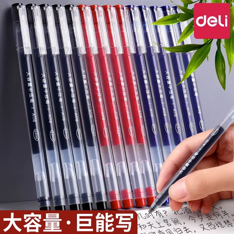 デリ A116 大容量ゲルペン 0.5 ミリメートルフルニードルチューブ赤青黒 3 色水性ペンカーボン巨大な書き込み速度